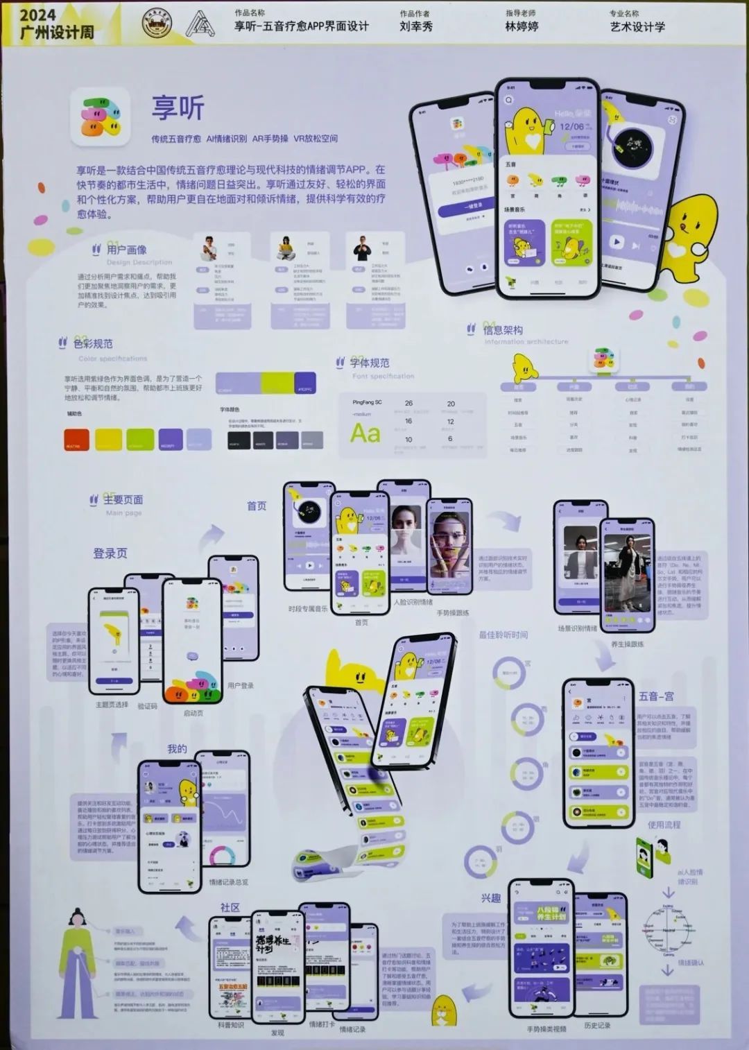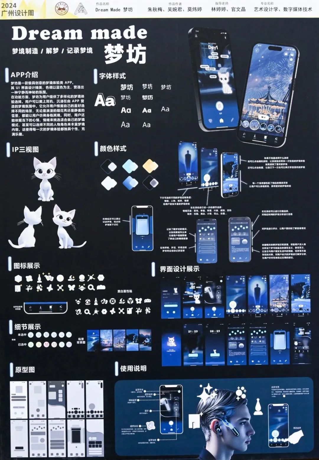 本次工作坊作品展的内容以“未来生活方式”为主题,融汇了艺术设计与创意产业系11门专业课程,包括品牌形象设计、导向系统设计、影像艺术、数字化体验设计等,历时2个月倾力打造,展出了一系列由师生共同创作的作品共39件。展出作品以设计作品展板、交互媒体影像视频、设计衍生品等多样化手段,全面展示了我系师生对于“未来设计”思考和探索,涵盖生活、工作、社交、环境等多角度未来生活场景设计内容。通过本次展览,展现出员工们在设计实践中的创新设计能力与批判性思维,推动了他们对未来社会问题的深入探索,也为观众呈现出伟德国际victor1946艺术设计与创意产业系在产学研合作过程中,探索出新的学科发展方向和产业创新实践的成果。以下为部分参展作品展示。