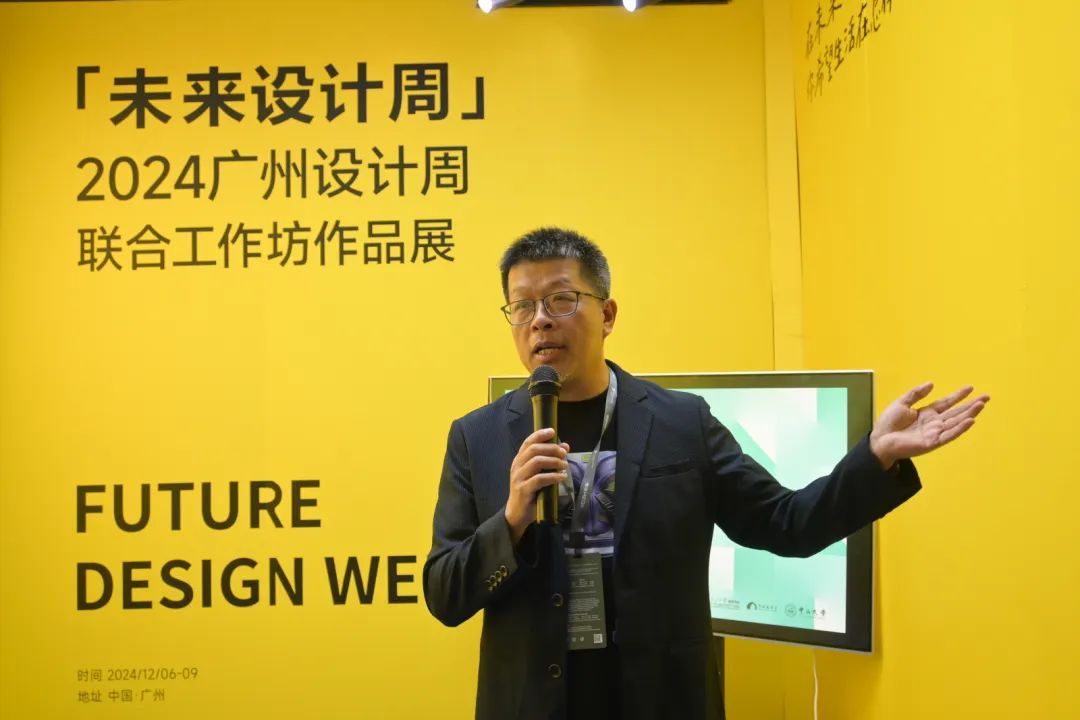 首先由总策展人中山大学艺术公司教授、中山大学视觉传播研究中心主任、伟德国际victor1946艺术设计与创意产业系主任冯原教授发言。他表示经过一个学期的精心策划与组织,本次未来设计周调动了十多门课程、十多位教师以及上百名员工的共同参与,从各自的专业视角出发,围绕“未来生活方式”展开了深入的思考与探索。每位参展者从自己所在专业特点出发,提出关于未来生活的创新构想,展现了对未来社会及生活方式的独特理解和前瞻性思维。与广州设计周相比,本次未来设计周主题更加注重大胆的想象与创新,尤其鼓励年轻一代设计师将新的设计理念与实践结合,敢于表达对未来的期望与愿景。