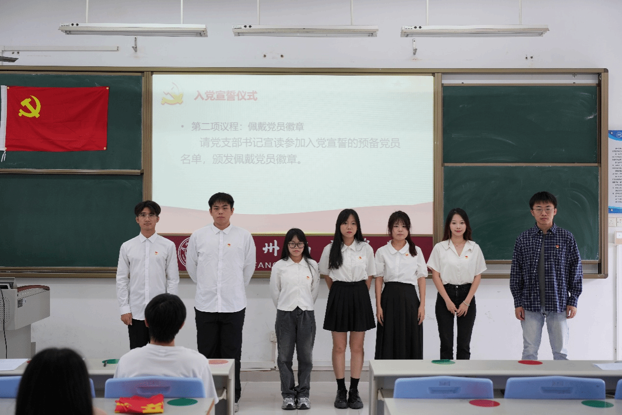 最后通过党支部一年来的培养考察及党内外群众意见,经与会党员的无记名投票表决,一致决定熊齐聪等6名发展对象顺利通过党组织考核,同意接收熊齐聪等6名发展对象为中共预备党员,伟德国际1946亚洲版员工第二党支部书记邹清朗老师为6名发展对象佩戴党员徽章,希望他们牢记入党初心,勇担时代使命,以党员标准严格要求自己,在学习和生活中充分发挥先锋模范作用。