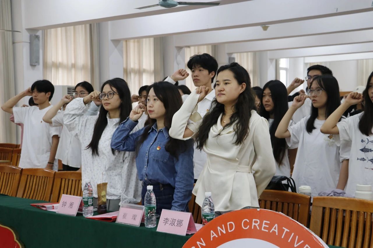 在学员们热烈的掌声中,迎来此次青马工程的授旗仪式。艺创系团委书记李淑娜老师将艺术设计与创意产业系青年马克思主义培养工程旗帜授予青马学员代表詹煜中。而后,由领誓人莫炜婷带领着青马工程全体学员进行青马工程宣誓仪式。
