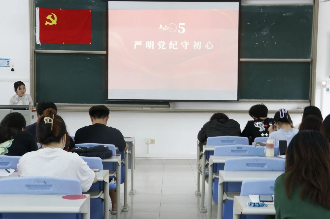 员工党支部副书记陈娜老师围绕《中国共产党纪律处分条例》,根据中国共产党的章程,对违法犯罪党员的纪律处分加以讲解,加强发展对象的自我监督性和保持清正廉洁的意识。推动新时代党纪学习教育走深走实,体现了成为一位合格的党员应坚定理想信念,筑牢信仰之基。
