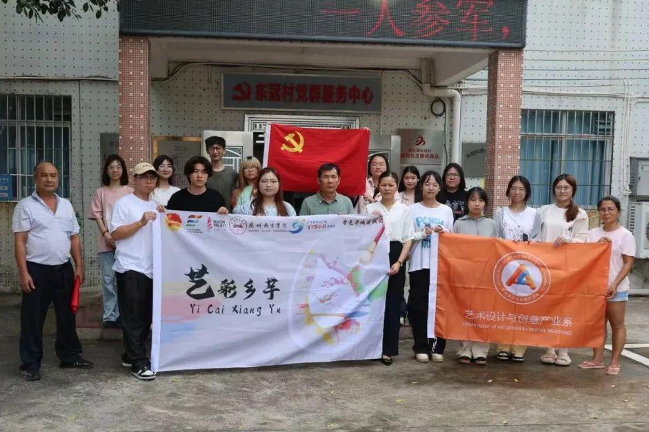 为深入学习贯彻党的二十大精神和习近平总书记视察广东重要讲话、重要指示精神,引导广大青年员工把课堂学习和乡村实践紧密结合起来。2024年7月初,由队长罗燕青带队的“古邑华城实践团”突击队前往江门台山市四九镇东冠村进行深入调研访问。此次调研内容主要围绕“百千万工程”突击队工作的进展状况以及未来10天墙绘设计安排,其目的为了更加全面地利用艺术形式增加产业活力,满足该地的产业需求。“古邑华城实践团”是一支怀揣青春理想、充满青春活力、能吃苦肯奋斗的团队,队伍由系主任冯原教授、系团委书记李淑娜、专任课教师汪敬雯指导,队长为罗燕青,队员有胡馨然、唐腾飞、郑彤、蔡健鸿、闫志勇、钟绣灵、罗伊蓝、彭江楠、薛小欢、黄艺珊、王佳燕、梁泳琳、吴宇、冯小菡共十五名同学。