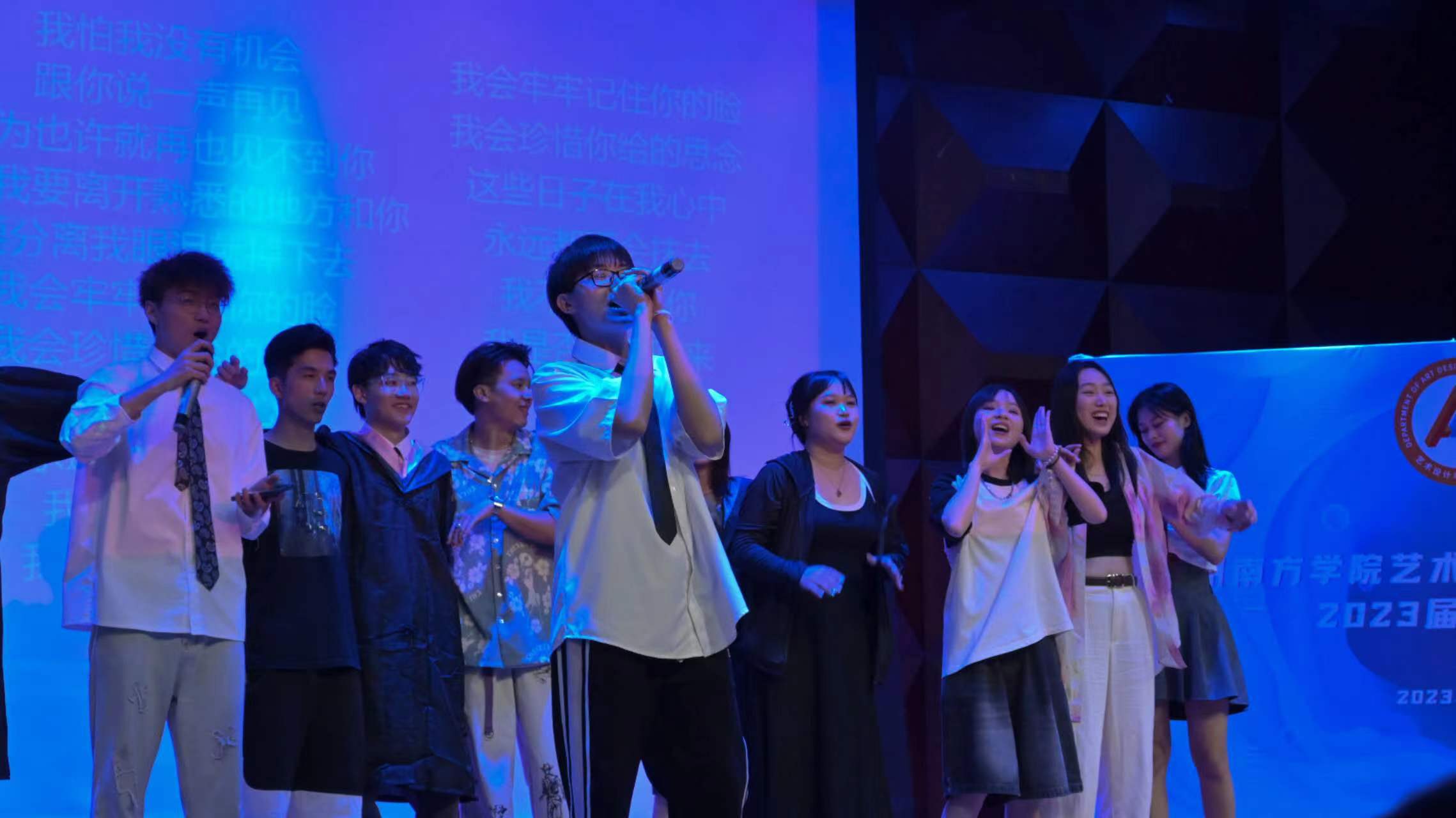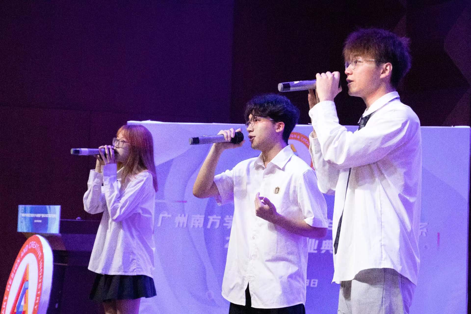 典礼进入尾声,艺创系的学弟学妹们走上了舞台,为毕业的学长学姐们献唱《凤凰花开的路口》,用动人的歌声,缅怀共同走过的岁月,将此刻的感动留在心中。