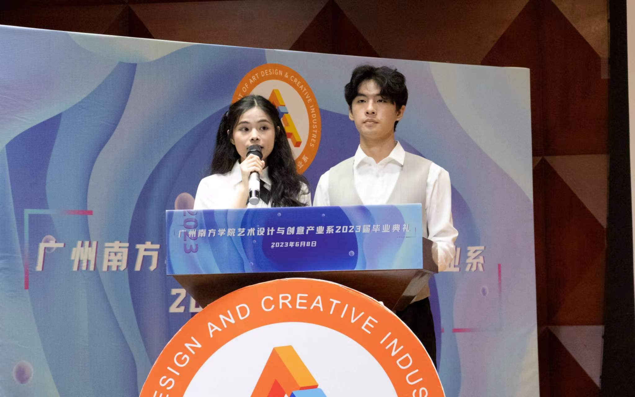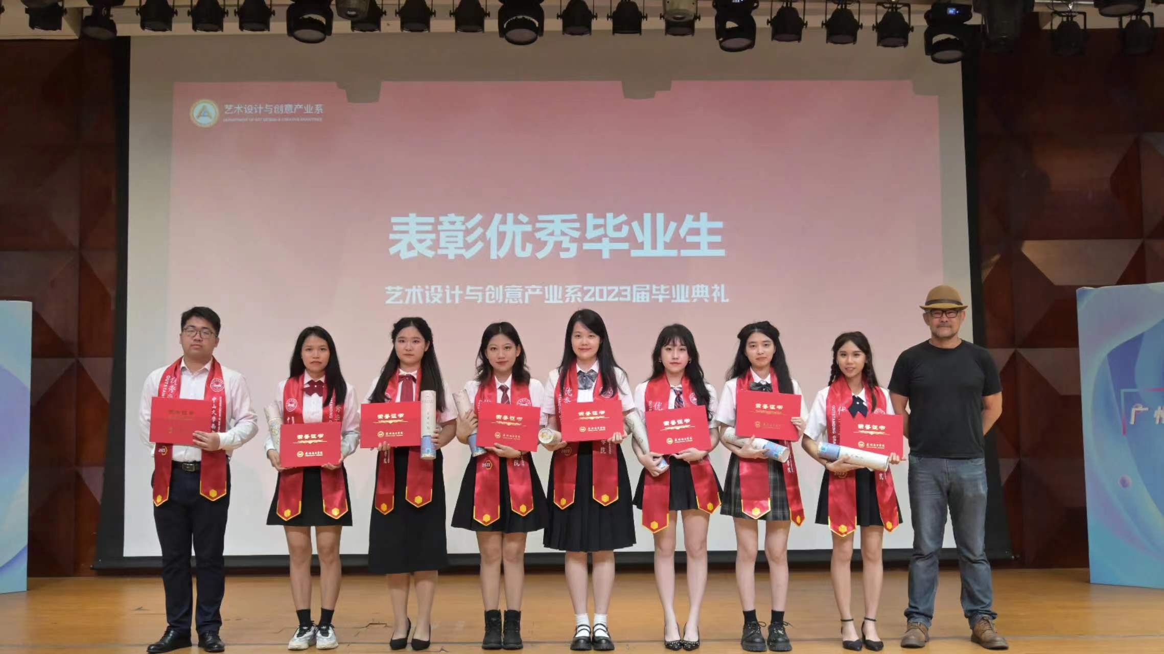 掌声响起,优秀毕业生表彰仪式拉开序幕。他们用自己的汗水和勤奋赢得了荣誉和掌声,用自己的成绩和作品展示了艺创系的风采和实力。陈嘉金同学以诗意的语言回顾了老员工活中难忘的点滴,感恩艺创系老师们的谆谆教诲和同学们的相互扶持,展望未来充满希望和挑战的人生旅程。