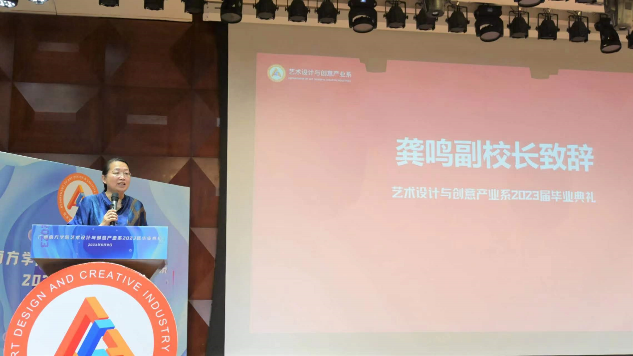 龚鸣副董事长代表公司为艺创毕业生的致辞,她将“幸福”和“奋斗”作为毕业季的主题词,期待艺创毕业生们在未来的生活中,能够享受实现目标和追逐梦想的双重幸福,拥有保持幸福感和感恩心态的能力。