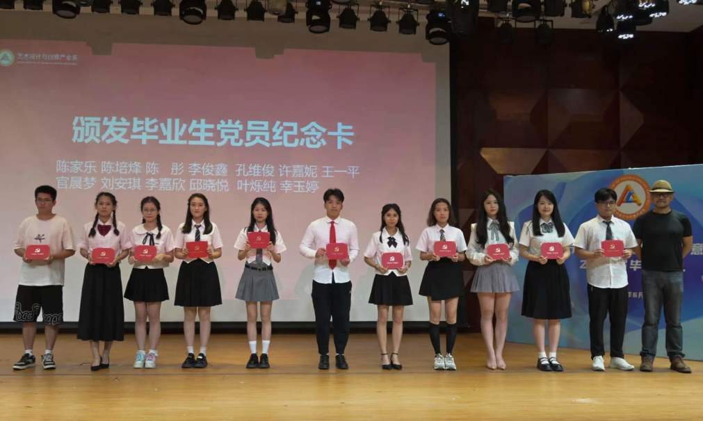 在这段悦人的旋律后,是毕业生党员纪念卡的颁发仪式,毕业生党员们纷纷上台,他们是党员先锋模范,是艺创系骄傲,他们胸怀理想信念,不畏困难挑战。