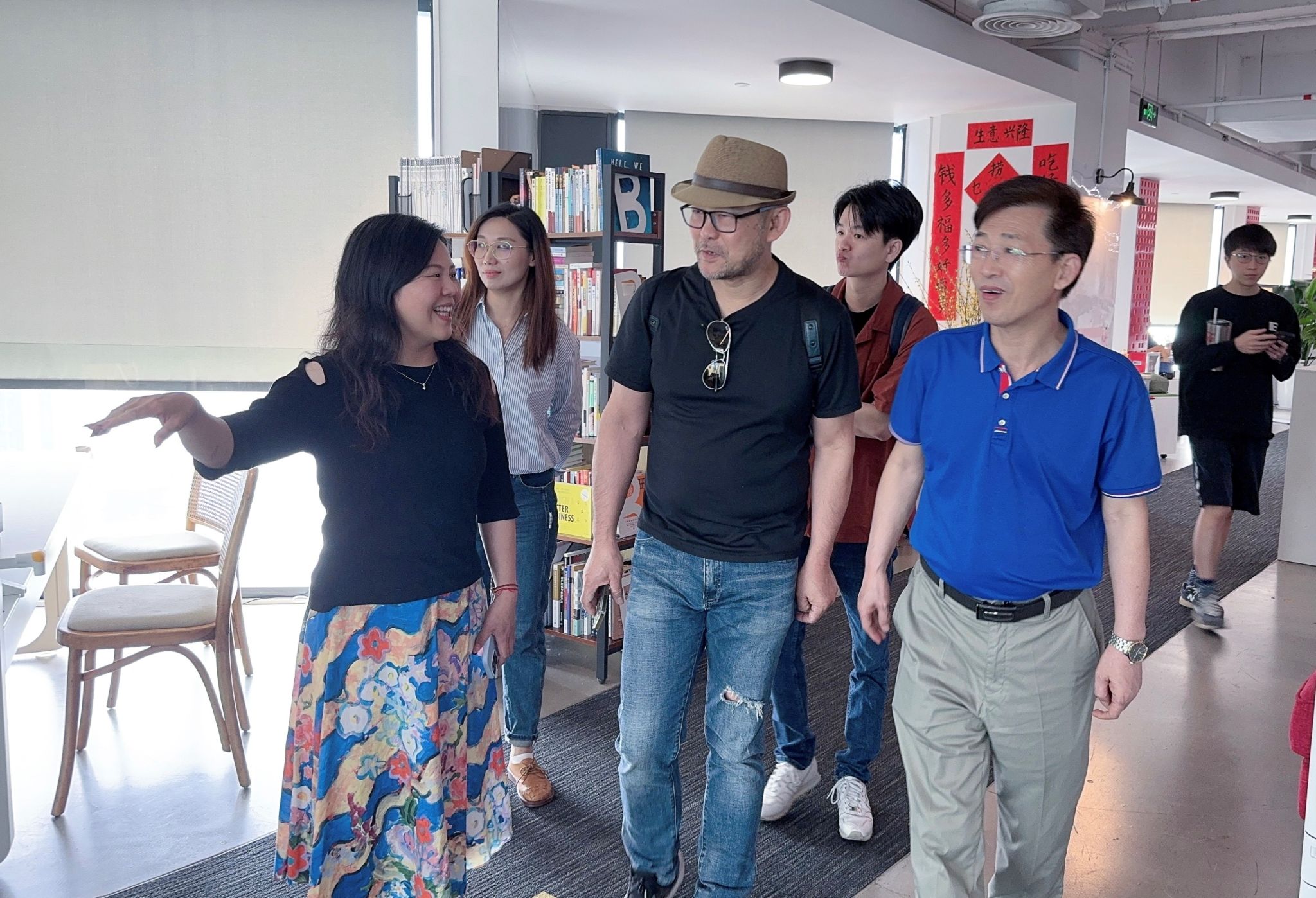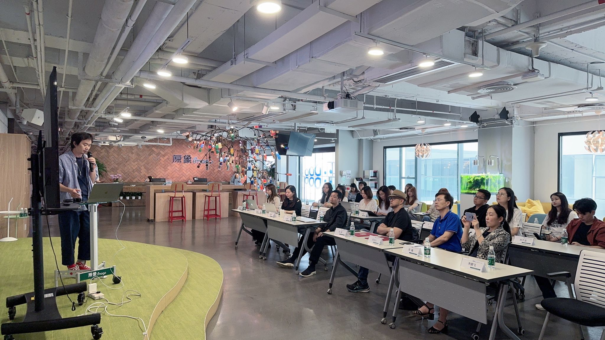 项目分享结束之后,在广州市原象信息科技有限公司相关负责人邓素颜(人才总监)、姬建会(HRBP经理)、黎佩珊(高级招聘专员)的陪同下参观了公司的公共区域、办公区域、创意展区等,深入讲解了企业文化和运营流程,并与员工团队进行了充分的互动。这一环节对于加深员工对企业实际工作环境的认识具有重要意义。