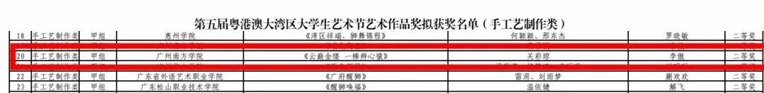 由苏明裕担任指导教师,陈钰怡创作的作品《粤韵风华》获艺术作品奖(手工艺制作类)一等奖。
