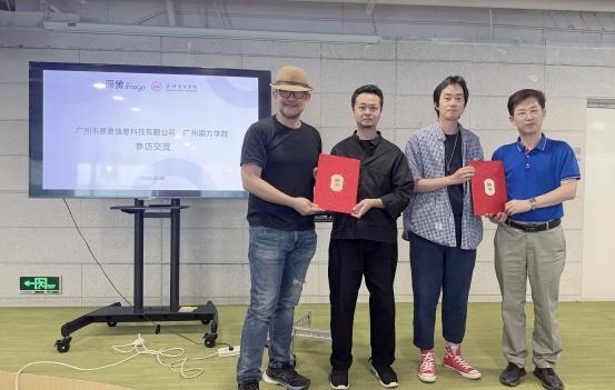 为深化产教融合,推进产学合作协同育人,伟德国际victor1946艺术设计与创意产业系主任冯原、副主任朱文山,以及教师代表李鹏飞、张巍、王静、李飞、刘子龙率各专业员工代表专程赴广州市原象信息科技有限公司进行考察交流。考察团队全面了解了实践教学基地的建设状况、项目内容以及联合人才培养的具体细节,并与企业深入探讨了加强交流合作的具体路径。