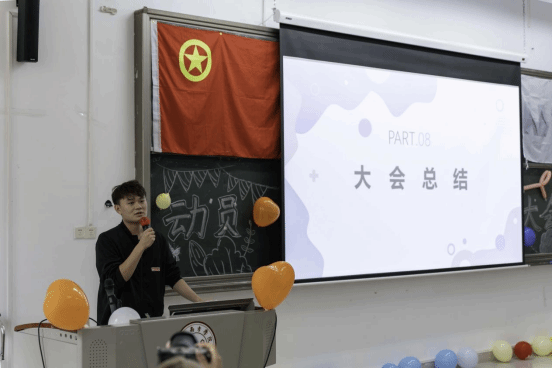 大会最后,员工第二党支部书记郭瀚阳老师与团委书记廖湘老师共同为“党团骨干结对小组”授旗,10组由党员骨干带领的团学小组正式成立,明确了“活动策划共参与、思想引领共落实”的工作目标。主持人在结束致辞中强调:“本次大会是‘党带团’工作的新起点,希望全体骨干以党员为榜样,在工作中勇挑重担。”