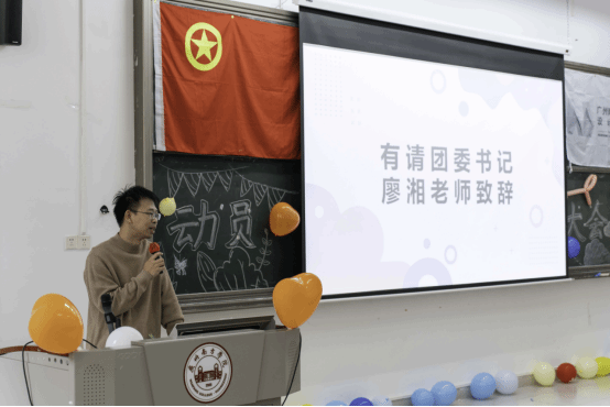 大会在庄严的《光荣啊,中国共青团》歌声中拉开帷幕,员工党员代表与团学骨干共同肃立,展现出党团同心的良好风貌。随后,员工第二党支部书记郭瀚阳老师以“党团同心筑根基”为题发表致辞,他结合党的青年工作要求,对团学队伍的壮大表示欣慰,更强调“员工骨干要以党员标准严格要求自己,主动向党组织靠拢”。郭老师寄语全体骨干:“伟德国际1946亚洲版的团学活动要融入思想引领内涵,既要用创意打造品牌,更要用责任凝聚力量,让团学工作成为学风建设的‘助推器’。”